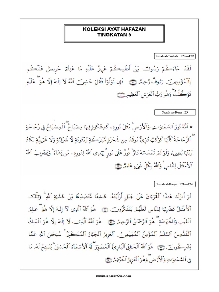 Ayat Ayat Hafazan Tingkatan 1 2 3 4 5 2012