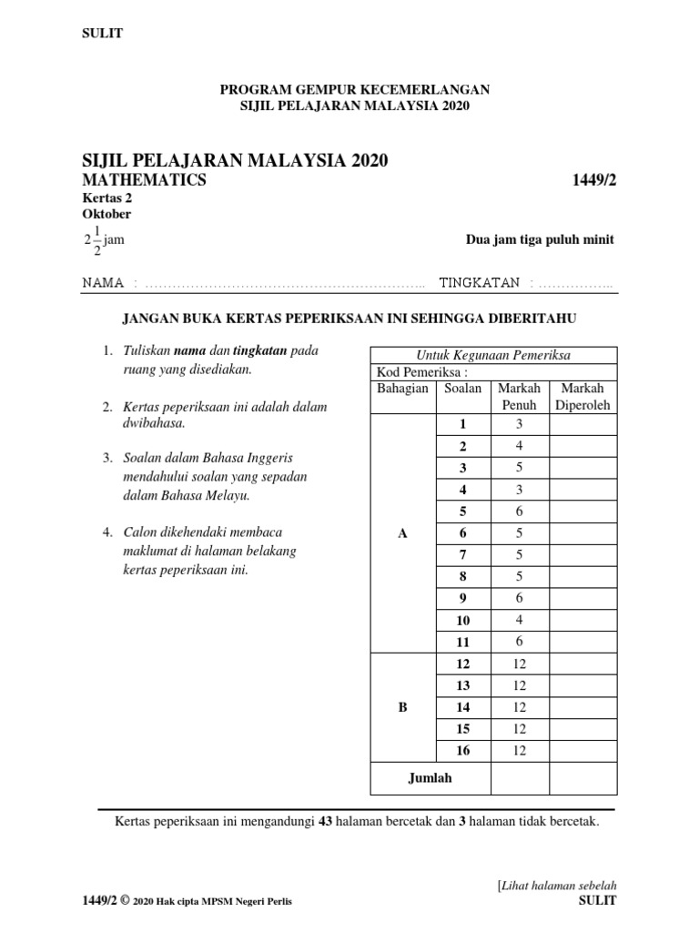 Soalan Percubaan Spm Matematik Perlis 2019 Gurubesar My